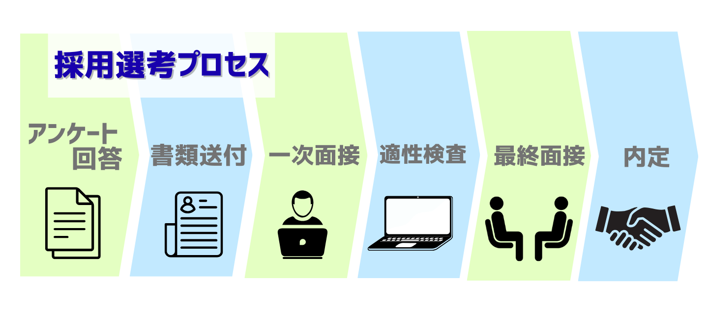 ④適性検査: 一次面接通過後、性格診断を目的とした適性検査を受検いただきます。