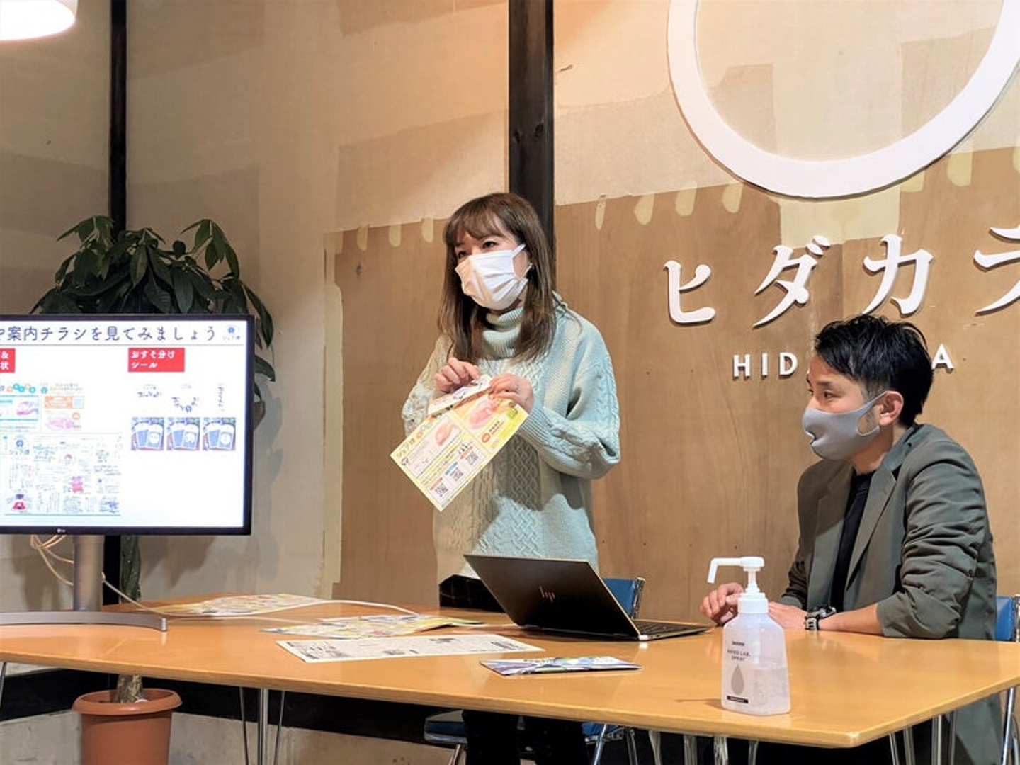 バックオフィス系の業務が多いんですが、ヒダカラでは色んなことに挑戦させてもらえるので、飛騨市を担当しているということから、市と連携して行った「飛騨市のシェア得」という期間限定の企画では企画を考えるところから、記者発表までを担当したりもしました。
