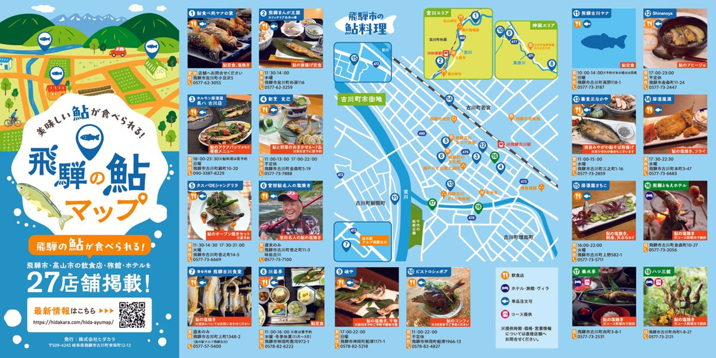 2023年にリリースした飛騨の鮎が食べられお店を紹介した鮎マップ