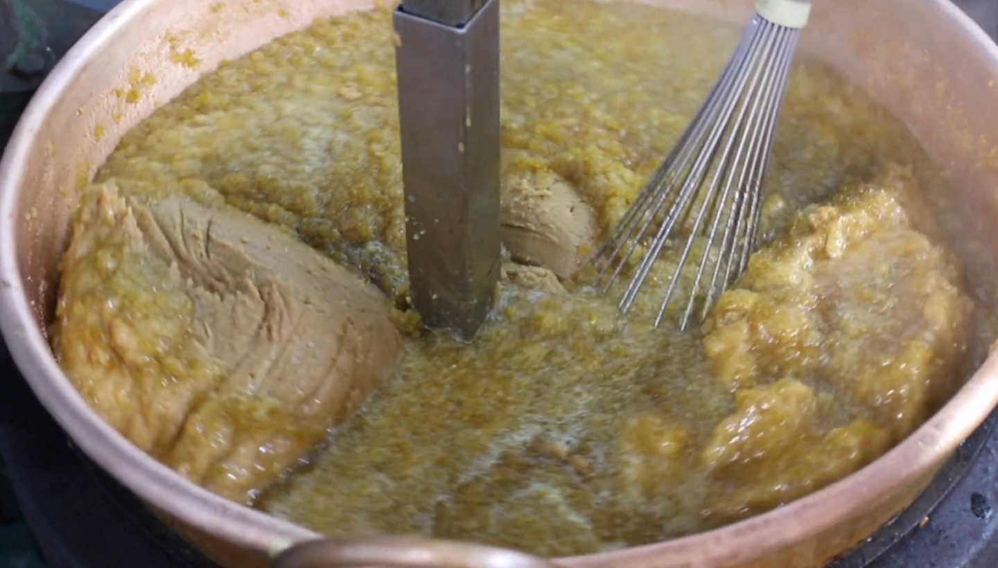 大きな鍋で煮込むのですが、配合とスピードと温度が、ゆず味噌・柚りっ子の味の決め手です。
