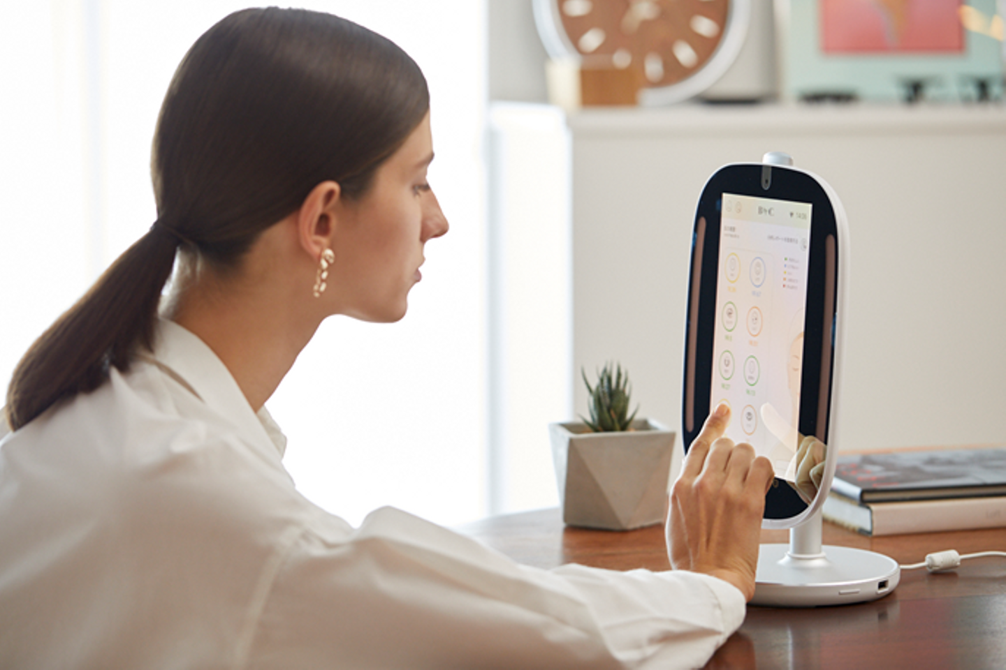 このミラーはご自身のお顔の理想の状態もわかるので、そこを目指しながらお手入れをしていくことで、理想のお顔を実現することができます。