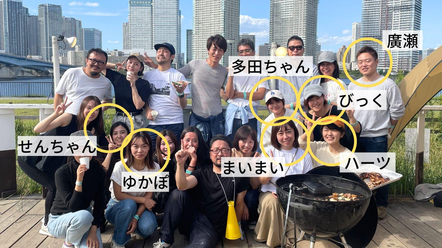 バーベキューのときの写真を使って顔写真紹介。あ、坂下さんいない…ごめんなさい。今度坂下特集を組みますので!