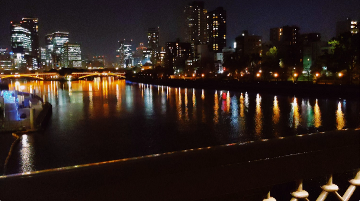 私も最近知ったのですが、天満橋から見る夜の景色はとても綺麗なんです!