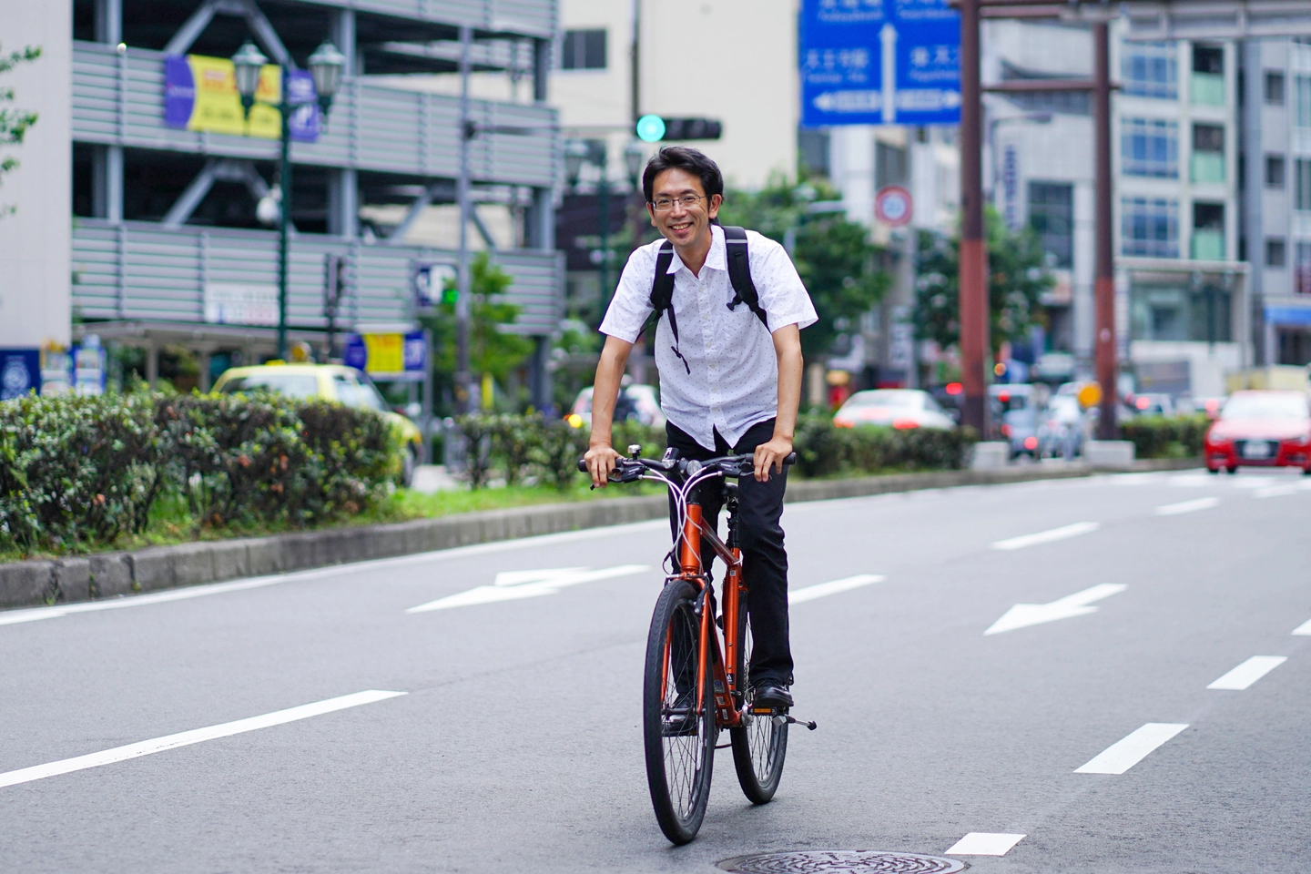 井上さんは、今日も朝早くから出勤です。軽快な通勤姿ですね。