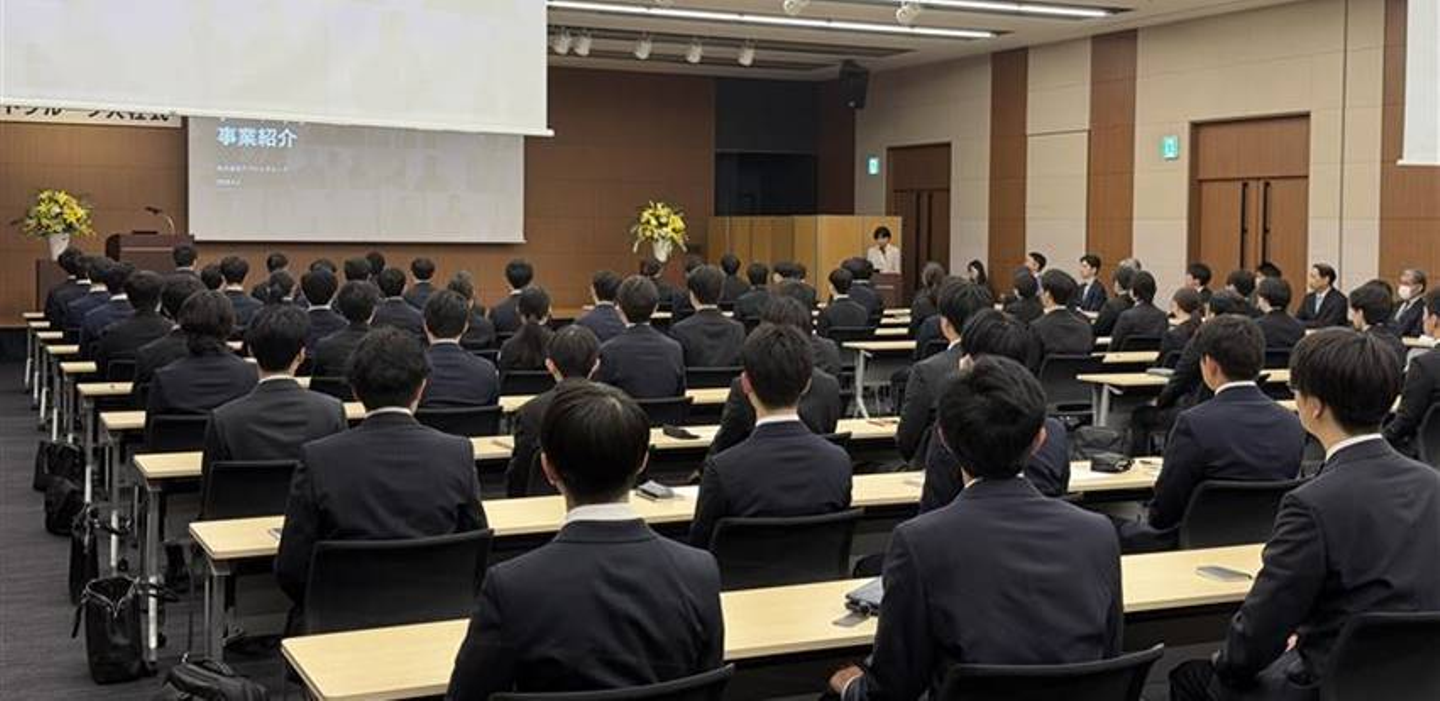 入社式が終了した後は、お昼休憩をはさみ、各社で用意している研修会場へ。