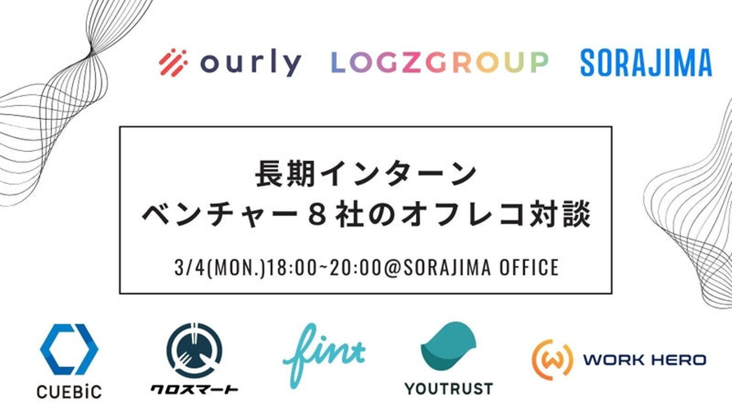 ourly人事のあいはら(@aiharamana1)です。 先日、学生さん向けイベントを開催しました!写真盛りだくさんで、イベントレポートします。 8社のベンチャー企業が、オフレコ対談 ourly株式会社とLOGZGROUP株式会社の主催で、計8社が参加しました。 参加企業の皆さんのおかげで、とても良い雰囲気で会を進行することができました。 SORAJIMAオフィスにて ...