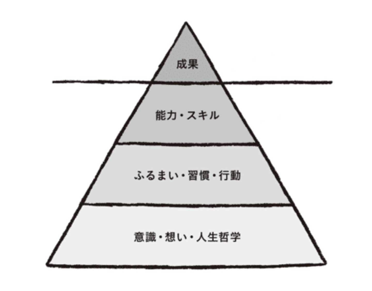 しかし、成果というのは見えている部分の氷山の一角でしかなく、成果を支えている土台がある。それをバランスよく大きくすることが大事だと、この本では書かれています。