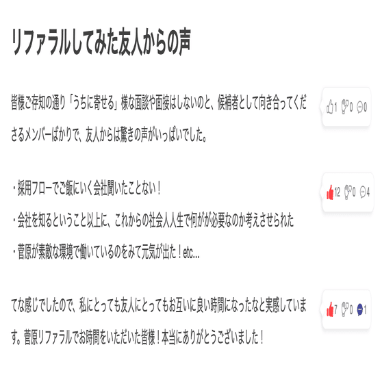 もしMGRがリファラルに非協力的で「そんな暇あるなら成果出せ」というスタンスだと、組織内の意識に溝ができてしまうらしいです…弊社メンバーは皆理解が高く協力的でとても助かりました。
