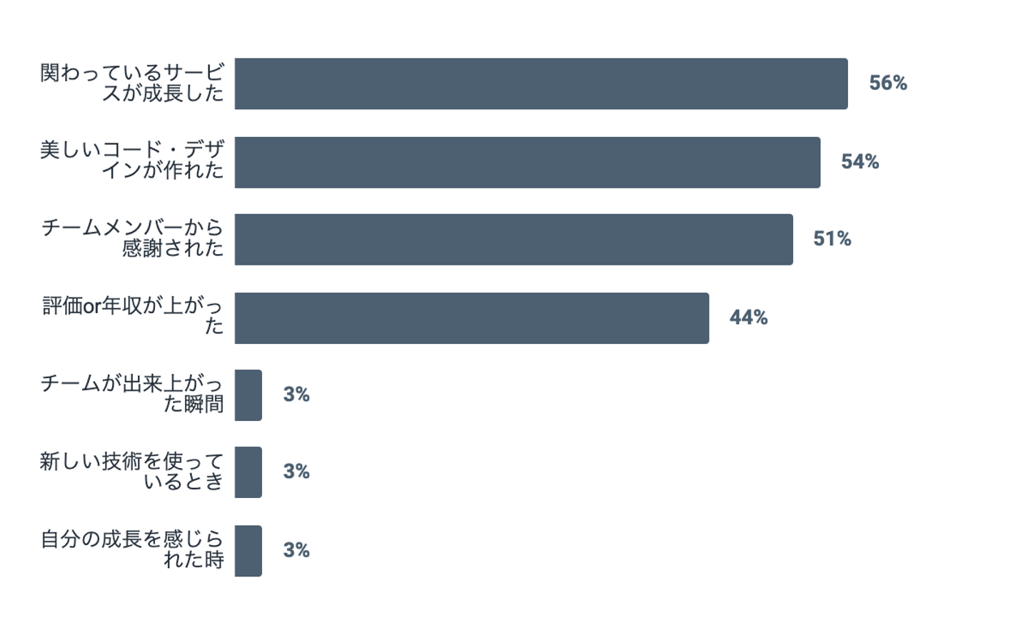 「働いていて一番嬉しい瞬間」の結果に、ミイダス開発チームの特徴がしっかりと出ています。