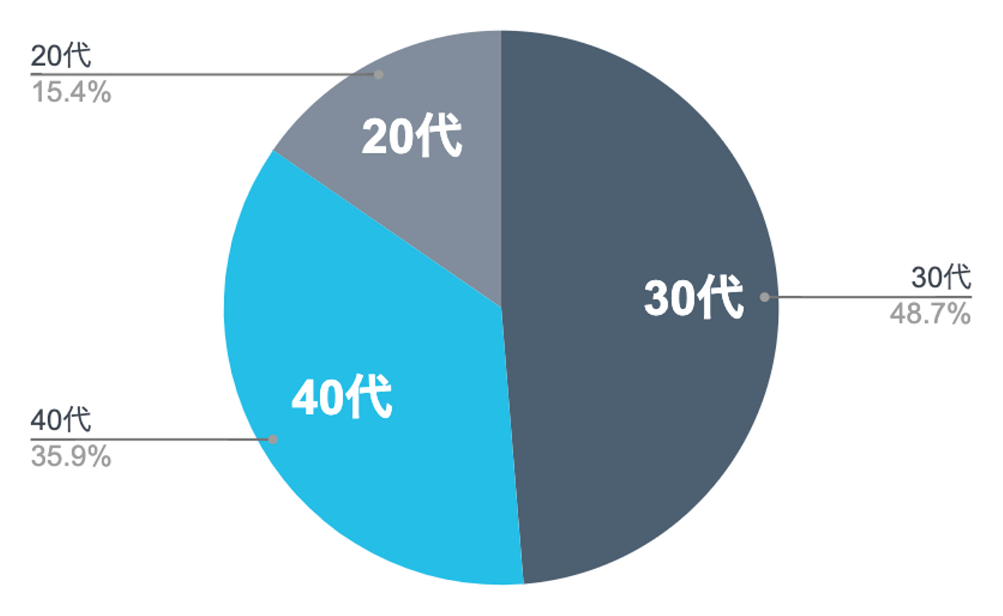 年齢層は30代がおよそ半数と、最も多い層になっています。