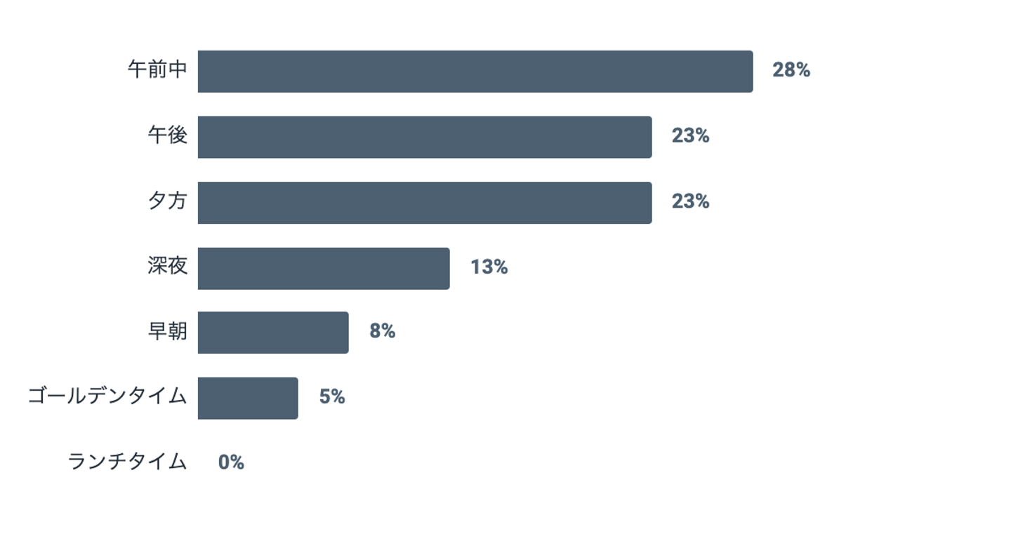 休日は圧倒的なインドア派の皆さんですが、意外にも(?)、午前中が高パフォーマンスの時間帯となっています。集中してプログラミングをするには、午前中のスッキリした頭のほうが良いのかもしれませんね。