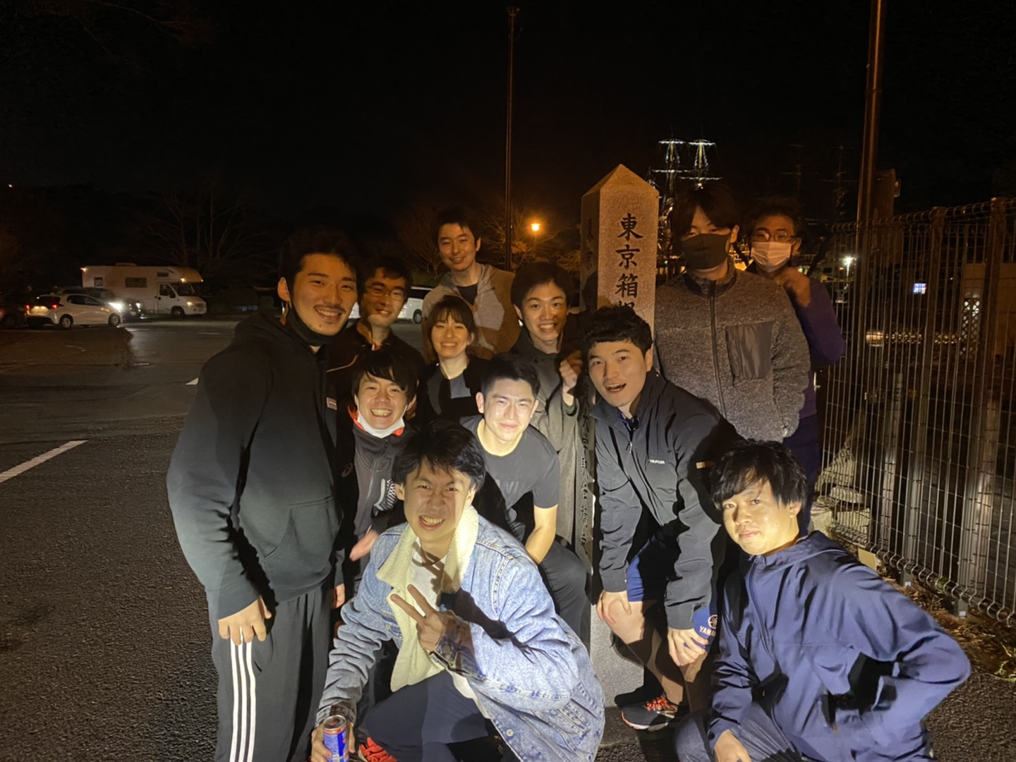 (同僚を巻き込んでベインで箱根駅伝を企画しました。写真は箱根駅伝の往路ゴール地点にて。朝4時に大手町を出たのに、夕方18時に箱根に着いたので真っ暗でした笑)