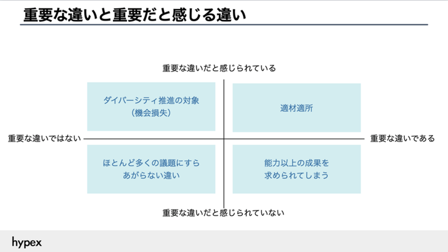 ダイバーシティ推進とは、許容した方が組織の成果のためになる個々のポテンシャルを活かす障壁となりえているものを取り払うことです。