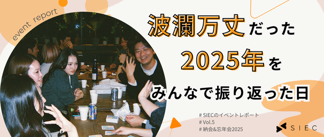 みなさん初めまして。株式会社SIECの広報、たけです!最近は「早く冬が終わってほしい…」と願いながら布団から泣く泣く脱出する朝を過ごしていますが、みなさんは冬お好きでしょうか?夏派の人も冬派の人もそれ以外の人も、健康に気をつけながら1日1日を一緒に乗り越えていきましょう! ❄️さて本日は、昨年末に行われましたSIEC2024年納会 & 忘年会の様子についてお伝えしたいと思います!2024年、みなさまはどのような1年を過ごしましたか?ちなみに私は、2024年4月にSIECへ入社しましたので、間違いなく激動の1年でした😌(詳しい話はいつか別の記事にて……)久しぶりの記事ではありますが、SIE...