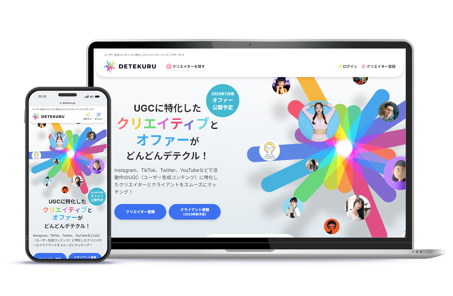 まずは7月にリリースした、企業とクリエイターをマッチングするクリエイタープラットフォーム「DETEKURU(デテクル)」ですね。サービスを介して、発注者とクリエイターの距離を縮めることで、企業のSNS公式アカウントやECサイトなどで必要になるクリエイティブ素材を、スピーディーに、クオリティ高く、ご提供ができます。
