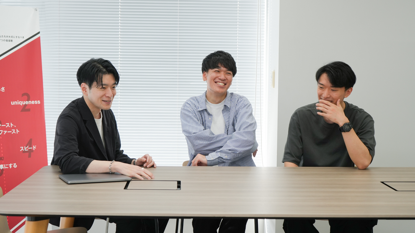 今回お話を伺ったのは、エンジニアチームのみなさん。社内で積極的に新規プロダクトが立ち上がる中で、事業側ともコミュニケーションを取りながら開発に繋げているプロフェッショナルのお三方に、エンジニアとして現在取り組んでいることや目指していること、今後のチャレンジなど伺いました!仲がいいエンジニア組織ならではの写真たちと共にお楽しみください!