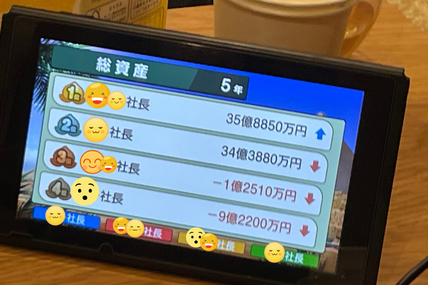 ◎大学時代の友人と桃鉄をやりました。最後の最後で友人の資産を奪い大逆転(笑)