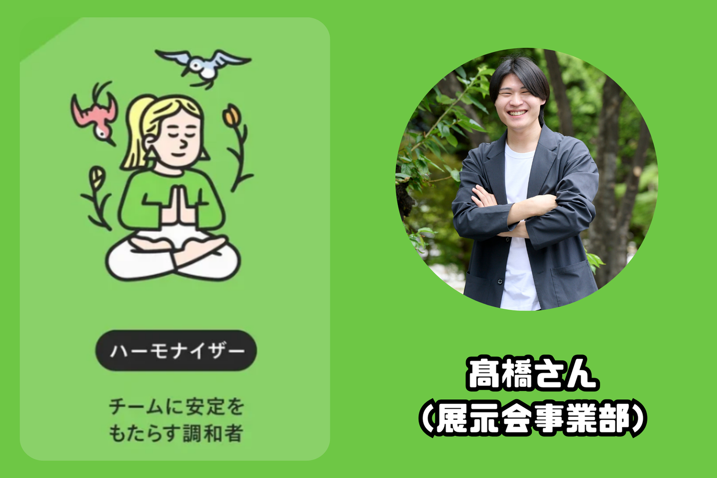 ハーモナイザーは、入社一年目で新規事業、現在は展示会事業部の責任者を務めている髙橋さんです。