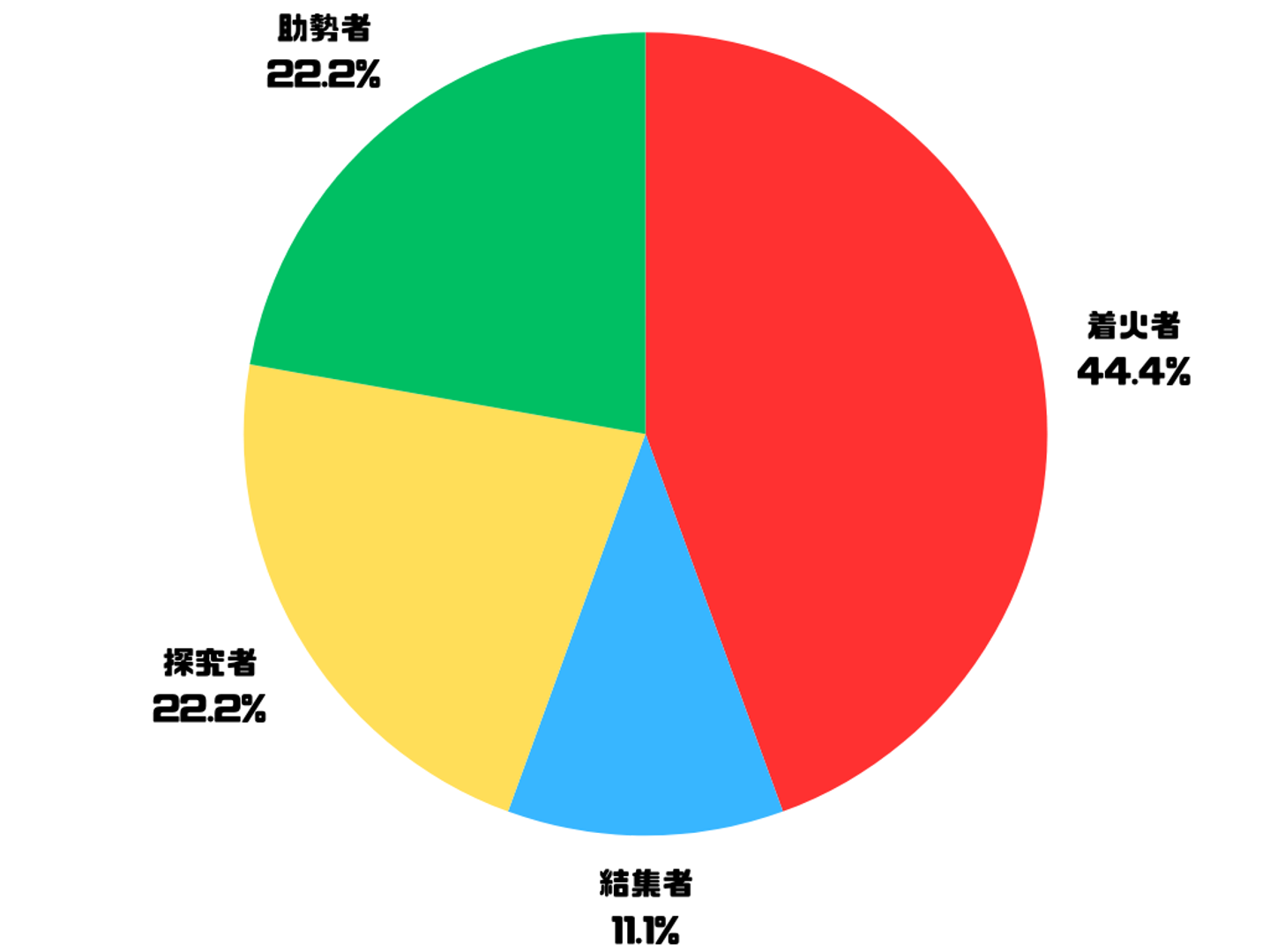 なんと約半数が「着火者」ということが発覚。攻めのセカツクらしい結果ですね(*^^*)