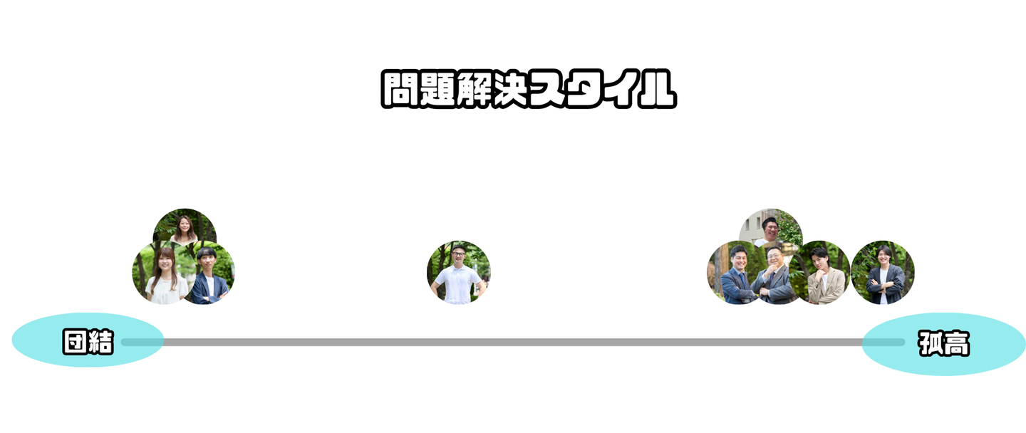 問題解決スタイルは孤高を極めているタイプが圧倒的です。セカツク社員のみなさんは助けを求めると親身になってくれる一方で、自分の問題については自分で解決する方が多いようです。