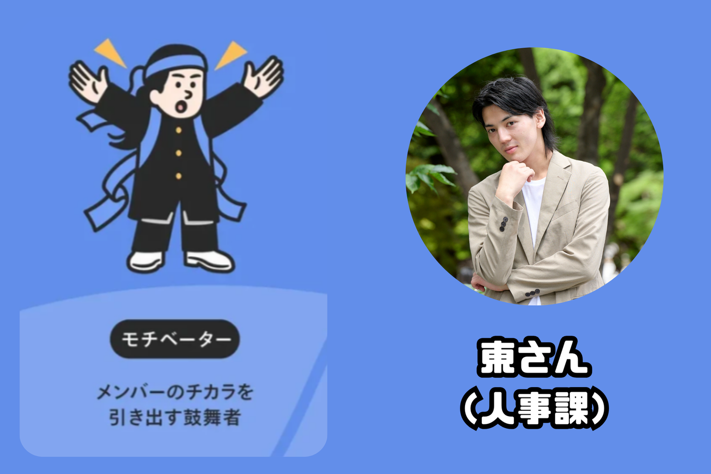 ムードメーカーで誰とでも仲が良く、社内行事にかかせない東さんがモチベーターでした。