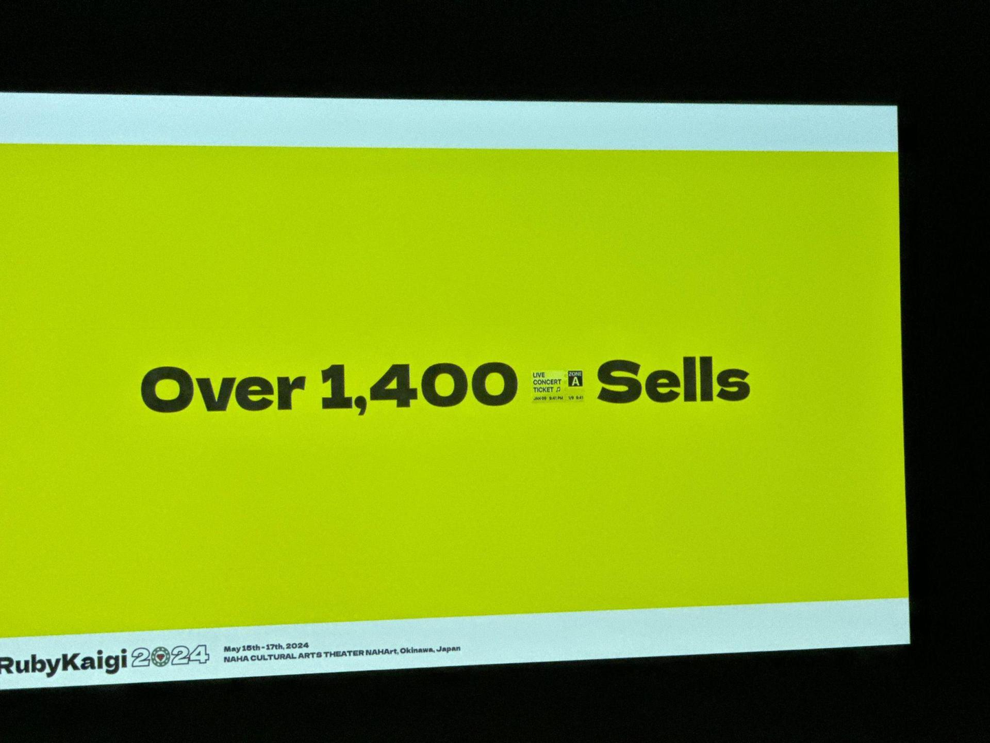 RubyKaigi2024のクロージングで発表された情報によりますと、チケットだけで1,400枚が完売したそうです。スポンサー枠なども考慮しますと、さらに多くの方々が来沖されたことになりますね。凄い!