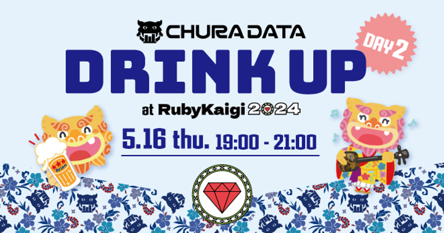 こんにちは、採用広報の新崎です。2024年5月15日〜17日に、那覇文化芸術劇場なはーと において、プログラミング言語Rubyの国際カンファレンス【RubyKaigi 2024】が開催されました。ちゅらデータ株式会社は、地元開催を盛り上げるため「 Drinkup Sponsor 」を務めさせていただき、RubyKaigi 2024 DAY2 終了後の夜に「Chura DATA Drinkup at RubyKaigi 2024」という懇親会イベントを開催しました。今回はその模様をお伝えします。