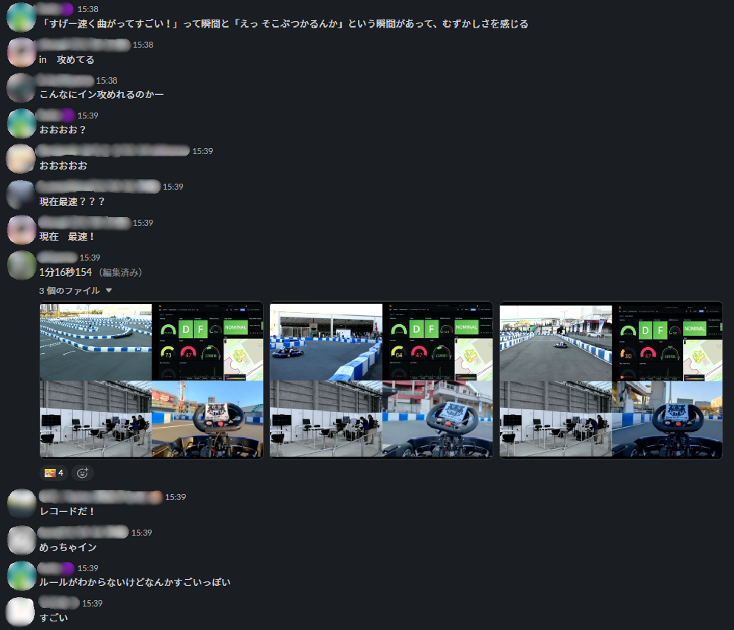 計16チームが参加し、それぞれが工夫を凝らした自動運転ソフトウェアを用いて、30分の持ち時間で最速タイムを競いました。周回ごとに記録を更新するチームもあり、その技術力の高さには会場全体が驚嘆!新記録が出るたびに自然と歓声や拍手が沸き起こり、会場には一体感が生まれていました。