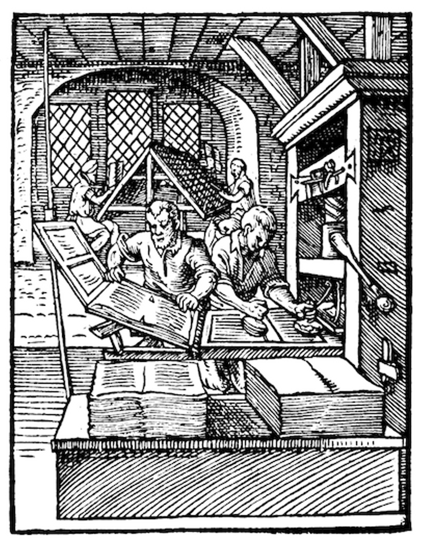 1568年に描かれた印刷所の様子