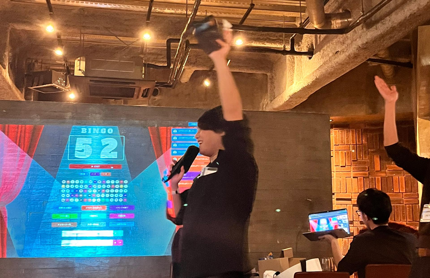壁にプロジェクターを投影しながら、授賞式とビンゴ大会を行います🔥🔥🔥