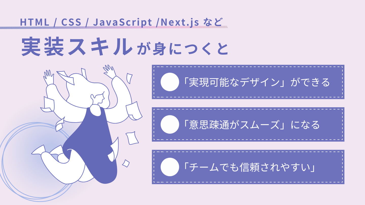 “デザインができる”だけでなく、“自分の手でサイトを形にできる”人材こそが、今のWeb業界で求められているからです。