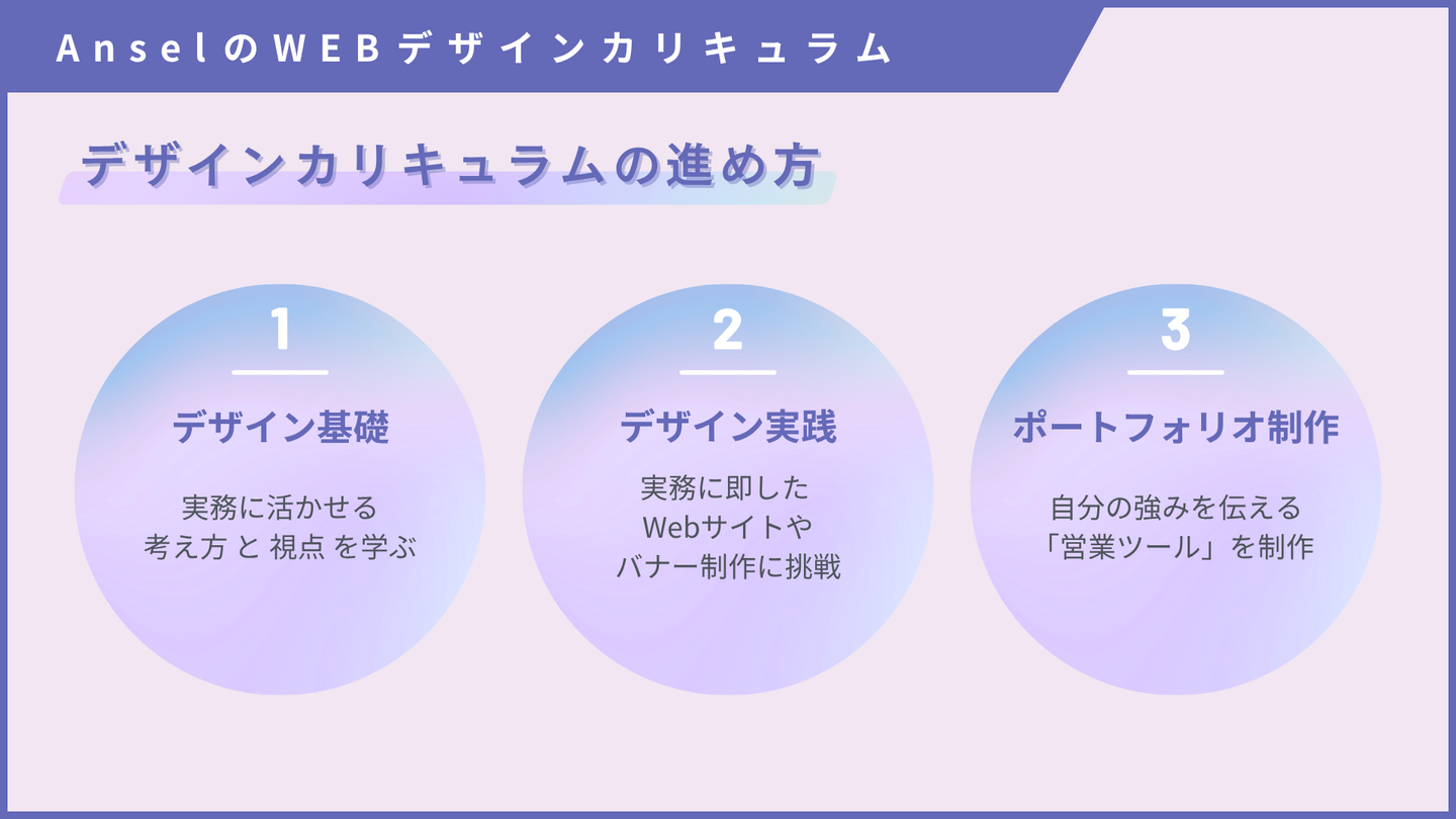 アンセルのWebデザイナーコースは、そんな未経験の方のために作られた実践型カリキュラム。