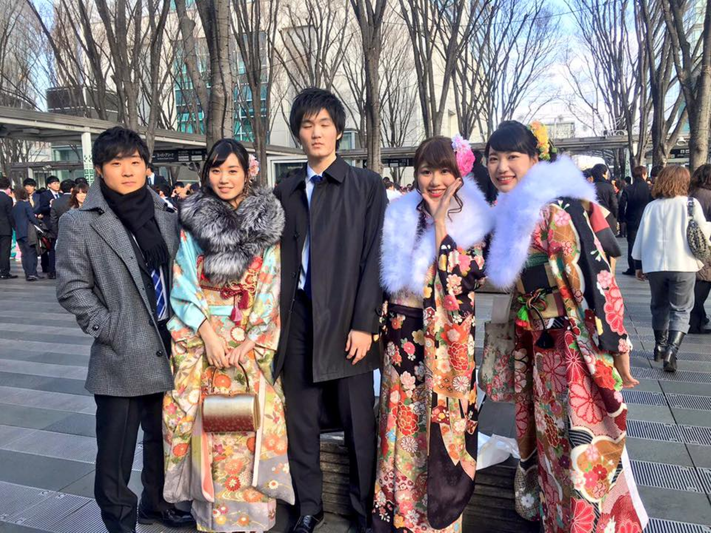 振袖姿のぷりもえさん。(右から二番目)すでにもう個性が爆発しているのでしょうか…?