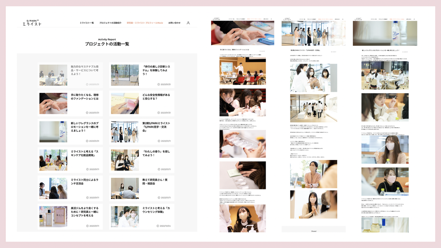 資生堂様の研究拠点「S/PARK(エスパーク)」における、若年層(Z世代)向けコミュニティ「ミライスト」の運営支援プロジェクト。2年間にわたり、ブランドと若者を繋ぐ仕組みをゼロから構築しました。