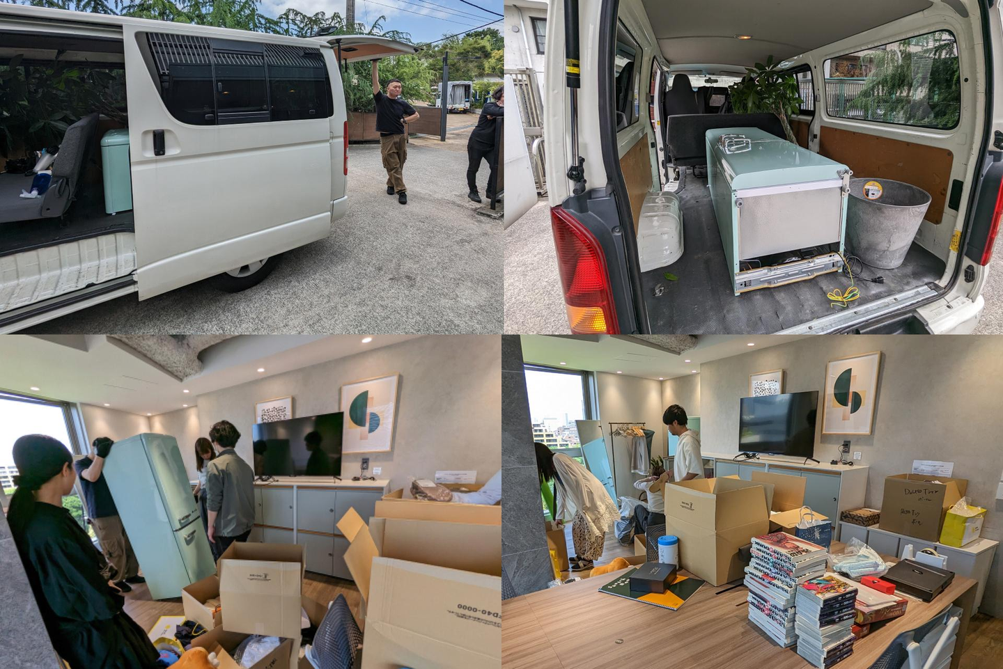 ハイエースを借りて、女性も男性もみんなで、荷物運びや新オフィスでの整理整頓をしました。