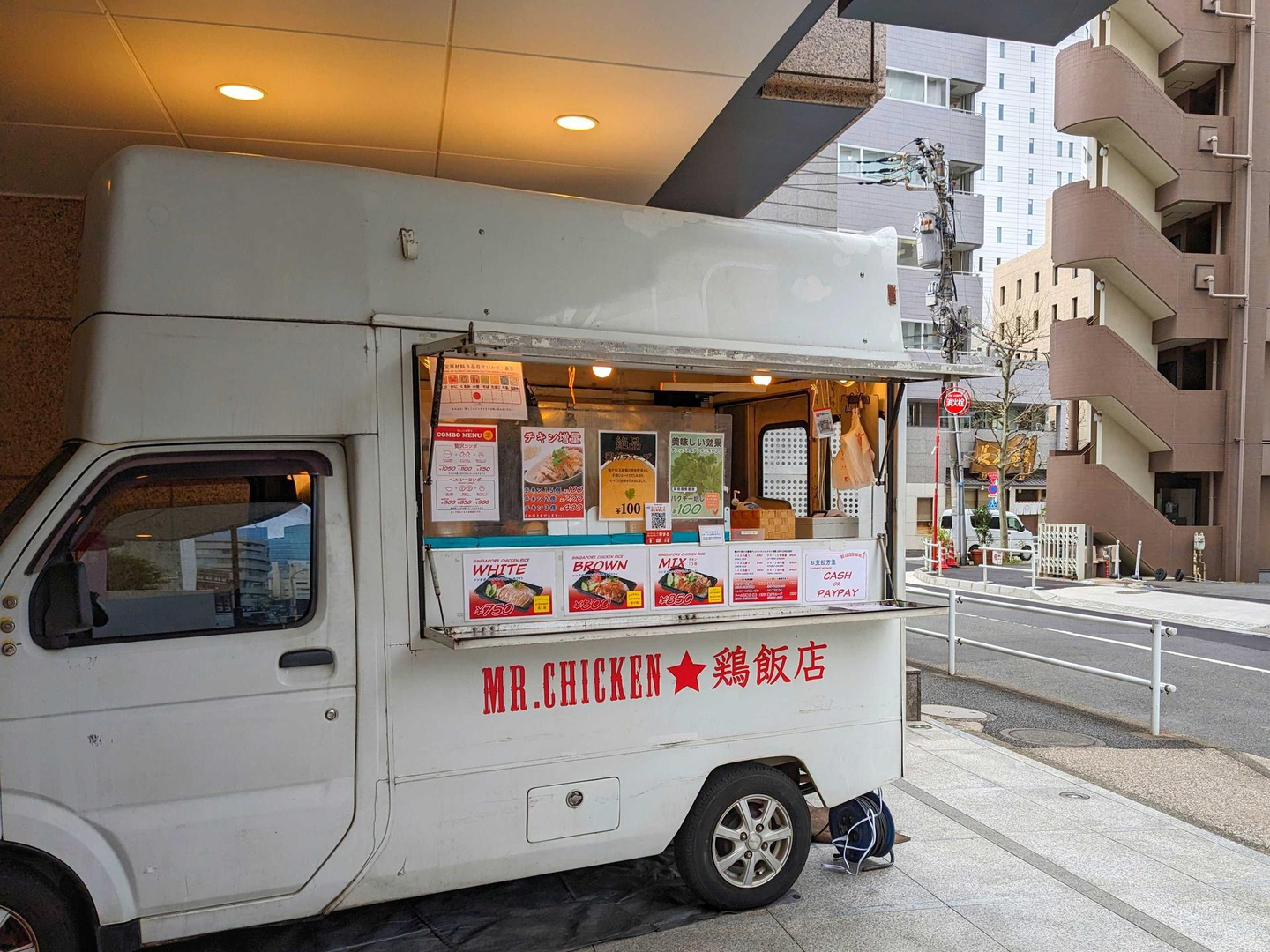 まず、Wework乃木坂オフィスの隣に日替わりで来るキッチンカーで、お弁当を購入。いま月曜日は、シンガポールチキンライス屋さんです。(美味しいですよ!)