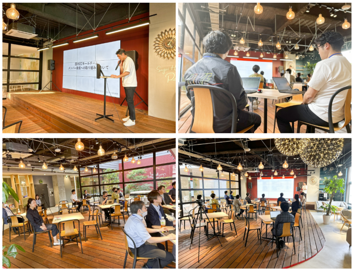 休憩スペースも完備されており、休憩時間には部署をまたいで、仲のよいメンバーどうしでランチを楽しむ姿も見られます。5階のカフェスペースに全社員で集まって、慰労をかねた食事会を開催したこともあるんですよ。社内の様子を紹介した記事もたくさんあるので、ぜひ読んでみてください!