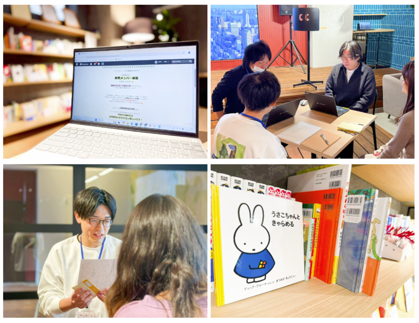 ハーブ図書の利用促進を通じて、メンバーが気持ちよく読書に集中できる環境づくりを推進する図書委員会。第4期にまで代替わりした現在も、社内の読書習慣を盛り上げるべく、定期的に集まってさまざまな企画を実行しています。