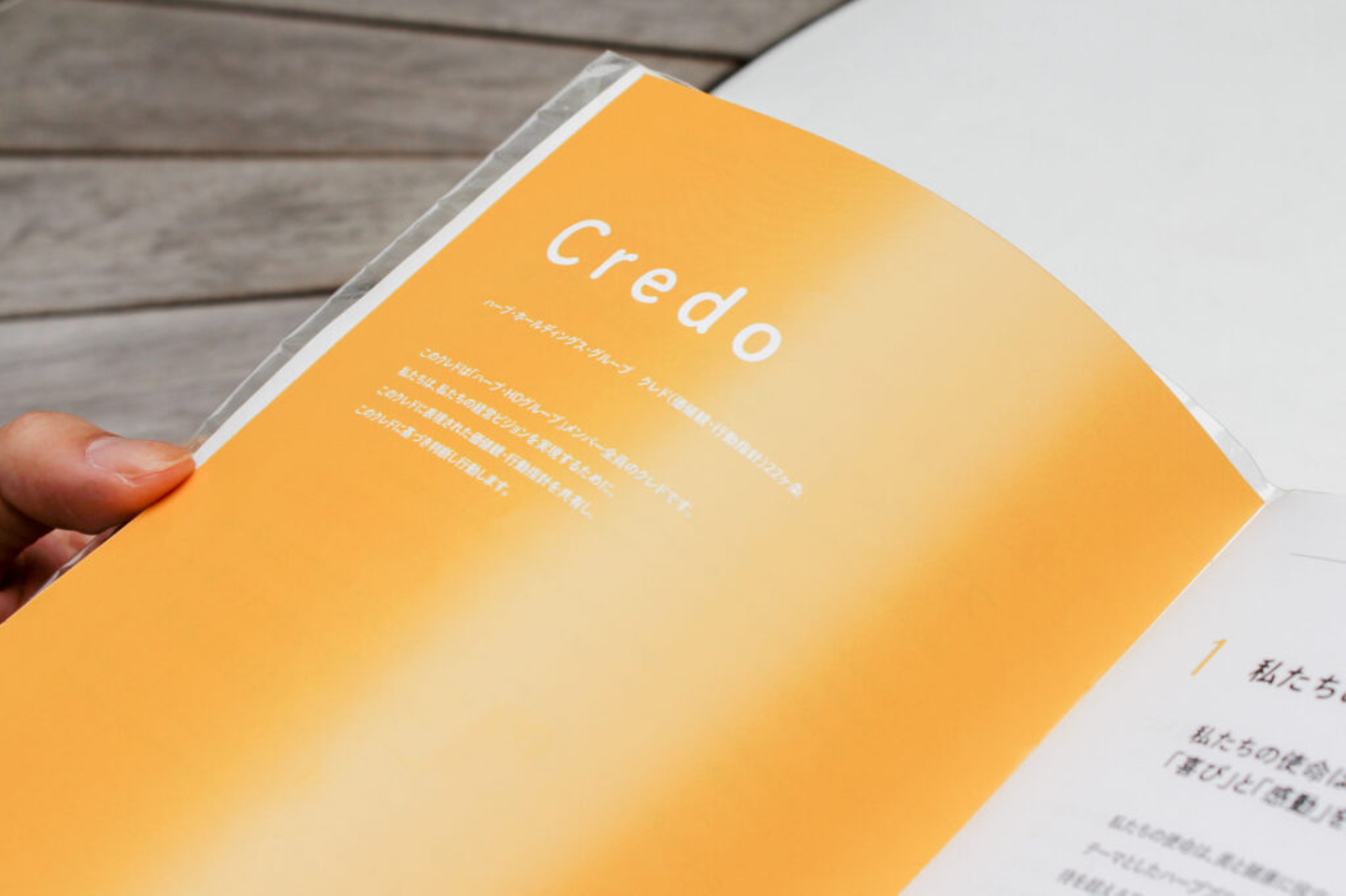 クレドは、ラテン語で「価値観・行動指針」を示す言葉。メンバーは経営ビジョンの実現に向け、クレドに表現された価値観・行動指針に基づき判断・行動することが求められます。