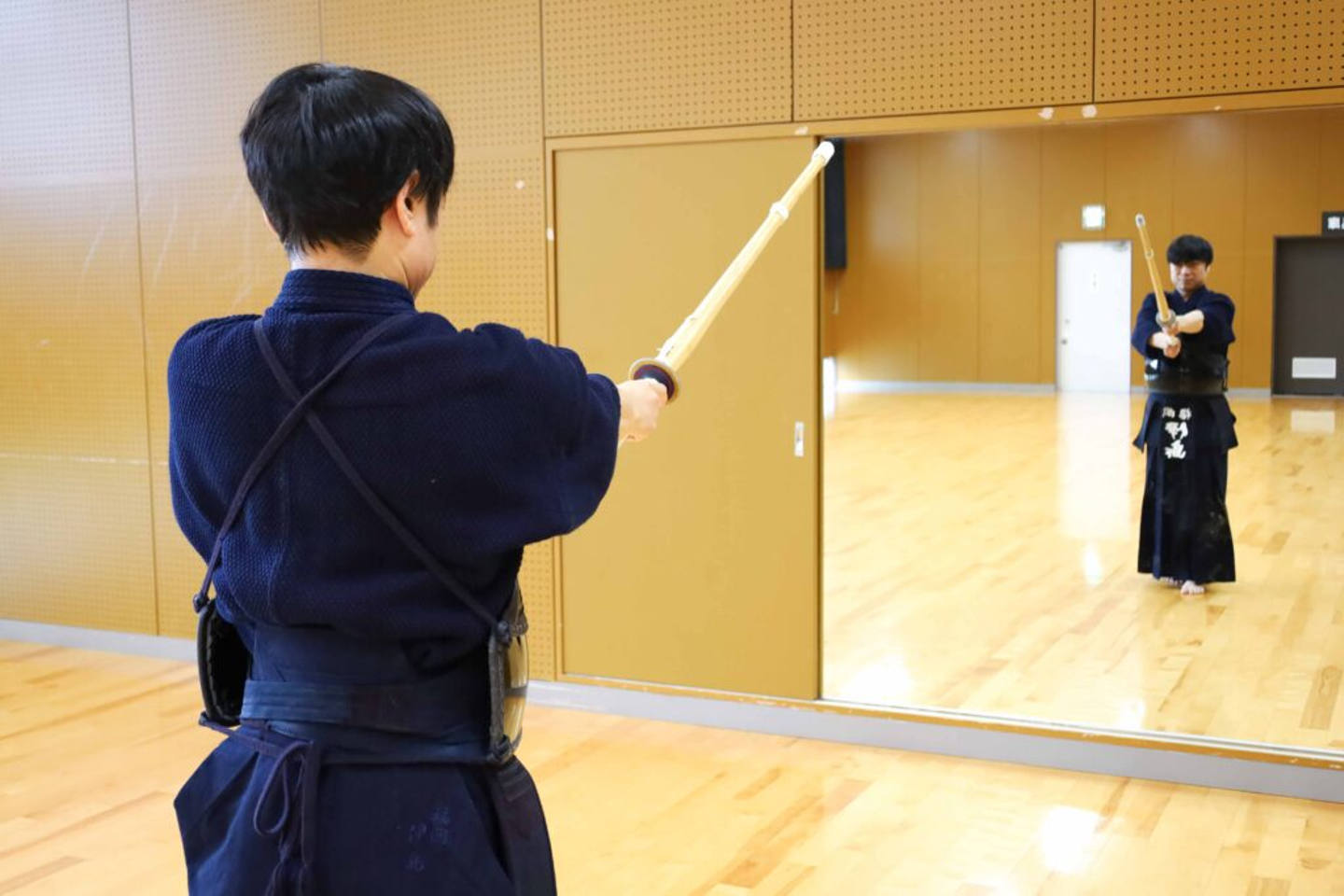 剣道は対峙して行うものです。一人稽古では感じにくい緊迫感がある中で、防具をつける息苦しさの中で動くことでしか学べない経験があります。剣道で勝つには「相手の心を崩す」ことが肝要です。竹刀を使っていても、気持ちは真剣で向かい合う気持ちで、常に集中して稽古に励んでいます。