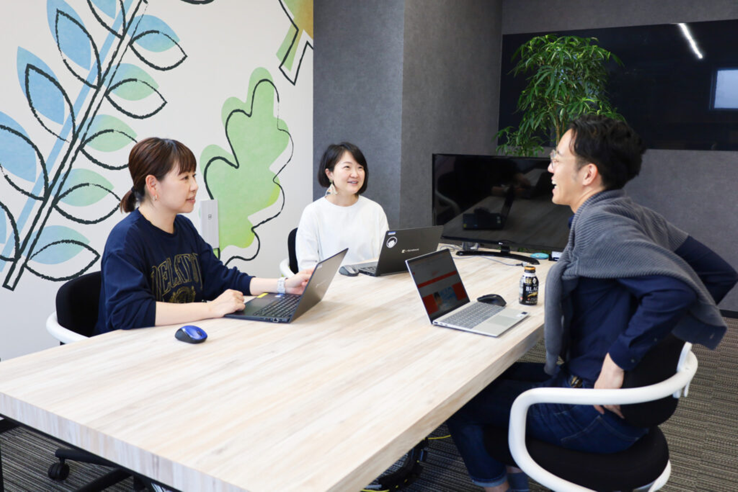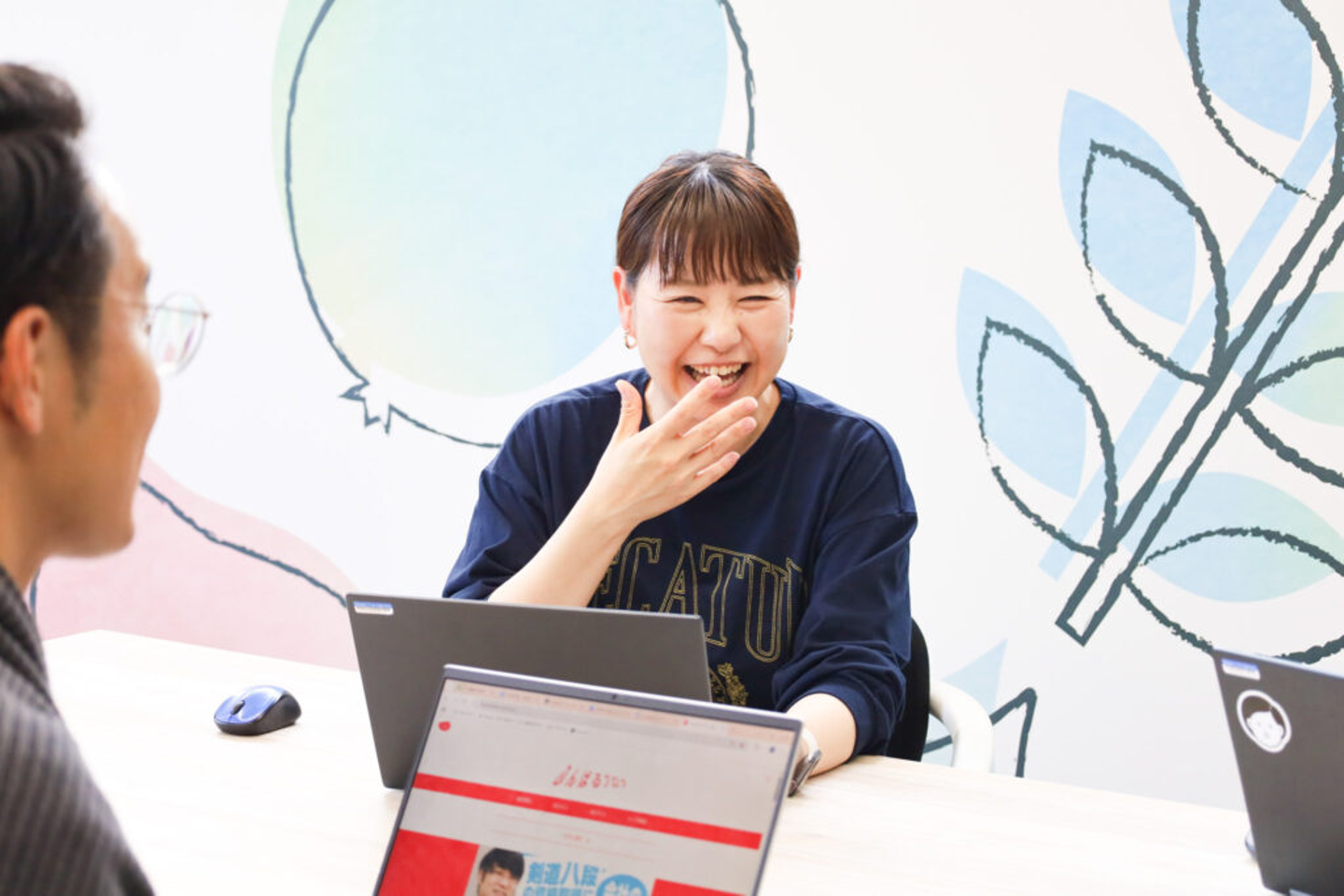 常にお客さまのことを考え、喜んでいただけることをモチベーションに、制作にあたるハーブ健康本舗のメンバー。制作担当の森山・開発担当の中川、それぞれがリスペクトをもって仕事にあたり、さらに進化したクリエイティブを生み出そうと、日々ふんばっています。
