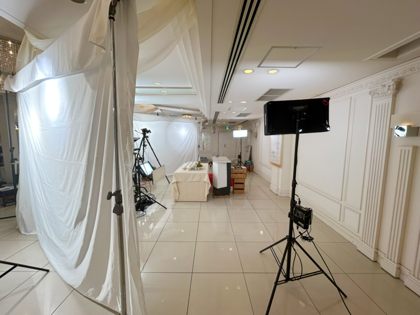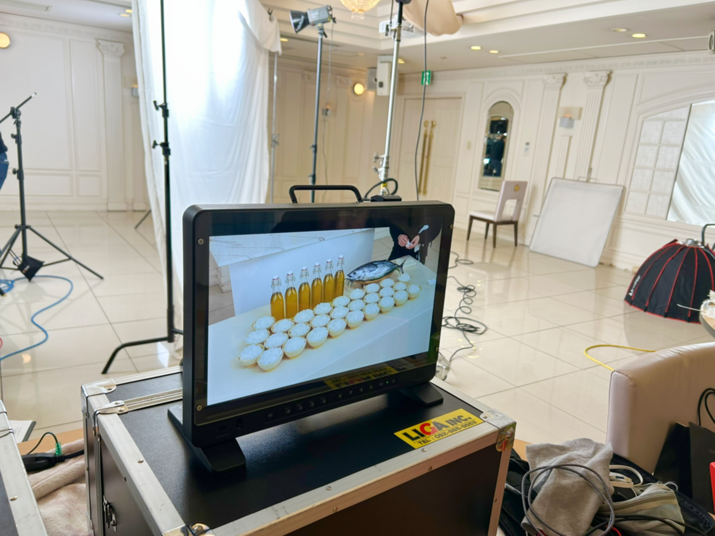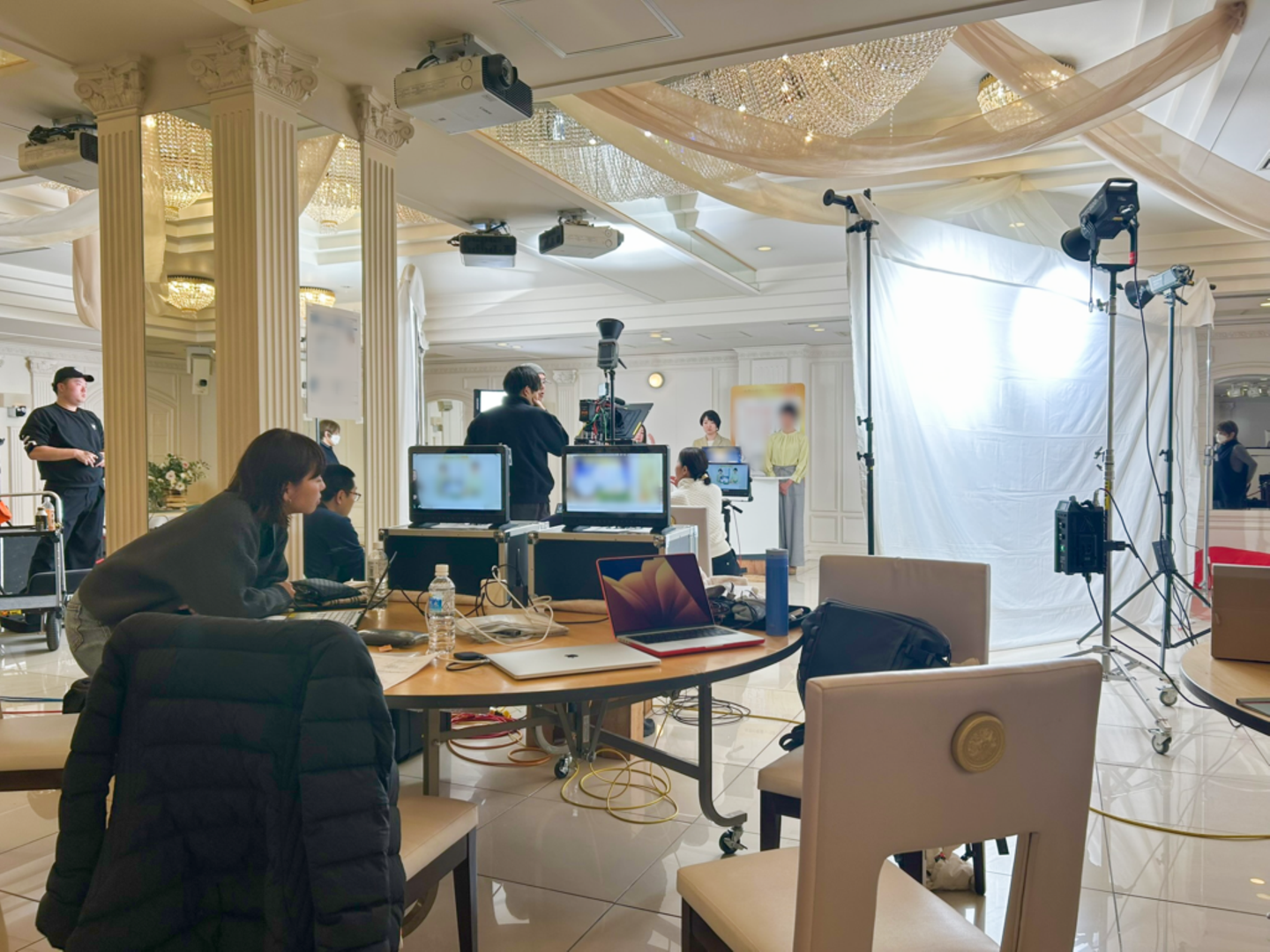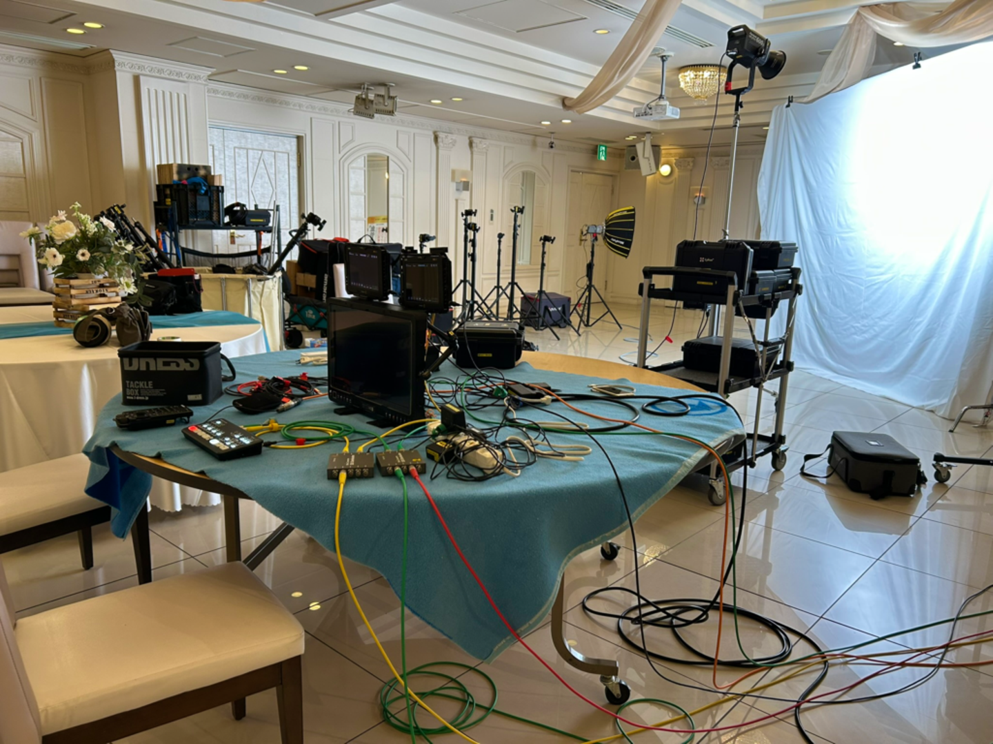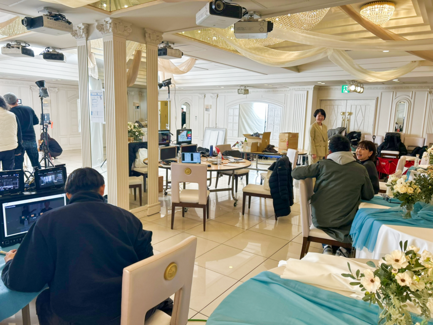 朝9時45分。撮影現場ではカメラ・照明の機材セッティングがスタートしました。