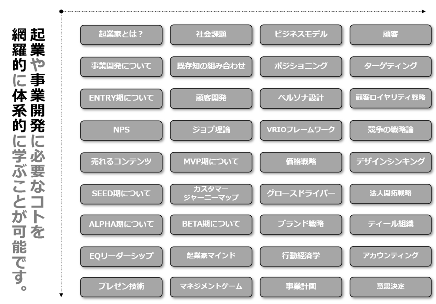 ですから、Autumnでは起業家教育に力を入れています。ざっと学ぶ内容は以下の通りです。