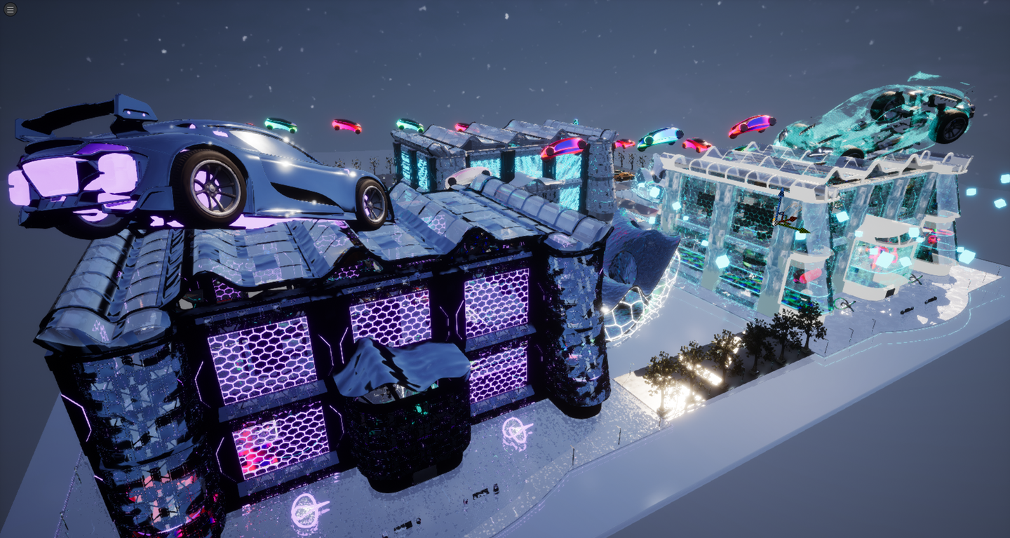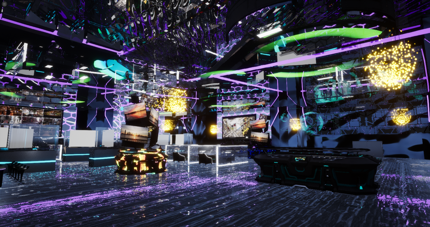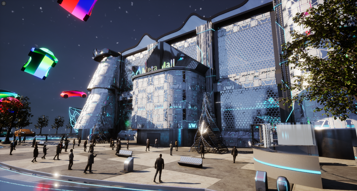 エンジニアユーザーを意識して、モールの中には巨大なゲーミングアイテムや、PC関連のアイテムを空中に配置しました(キーボード、ドローン、マイク、ワイヤレスイヤホンなど)