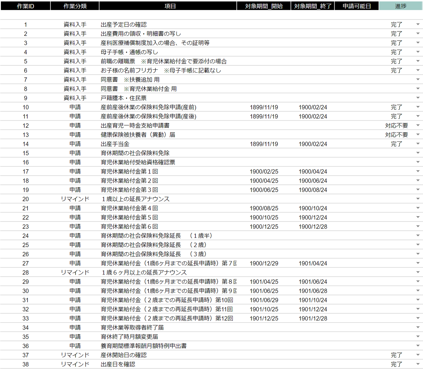 出産関連管理シート