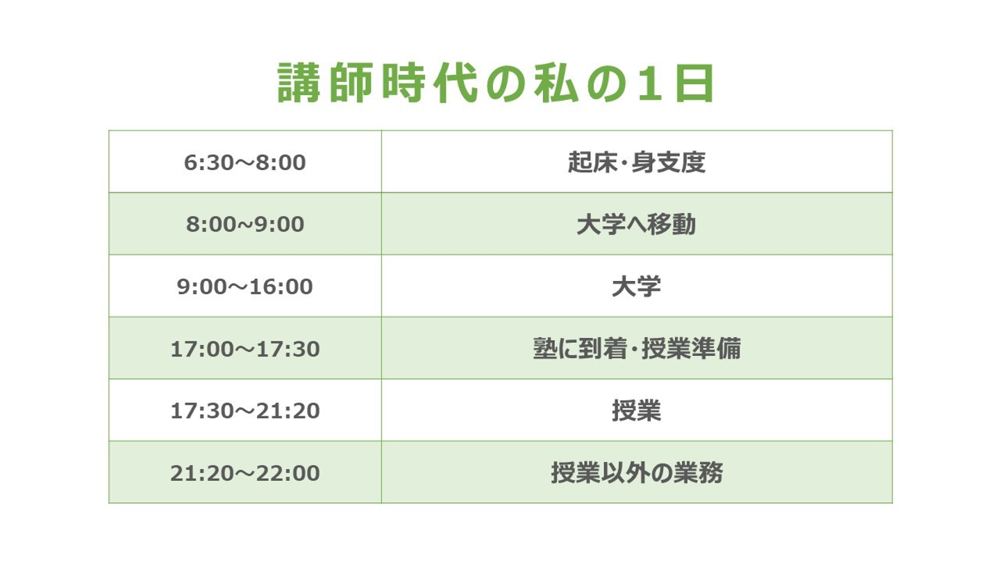 『講師時代の私の1日』を通して、以上のことを知っていただけるようお伝えしていきます!