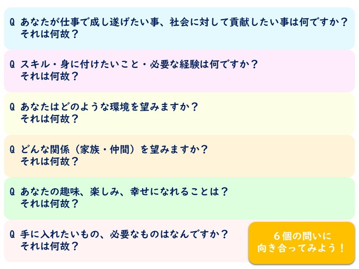 「Life Chart」や「Life Chart Review」、「Dream Design」など、様々な自己分析方法に挑戦して、今まで見えてこなかった自分自身を発見しましょう!