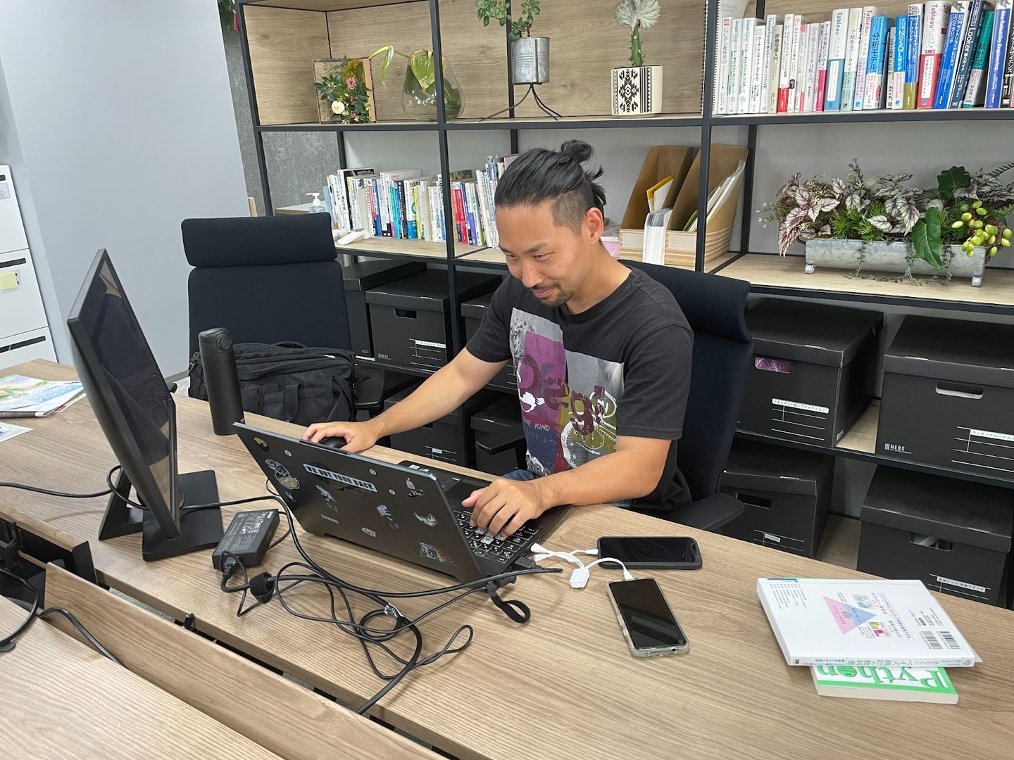 (緑あふれるオフィスでの1枚)