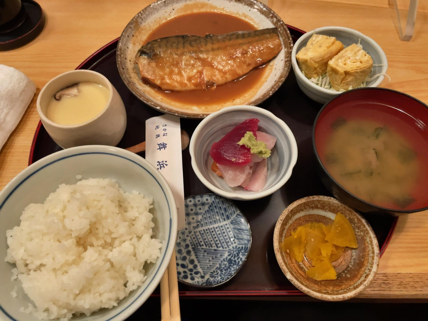- メイン一品(特にサバの味噌煮が美味)に加えて、小鉢がついてくるボリュームの満足感