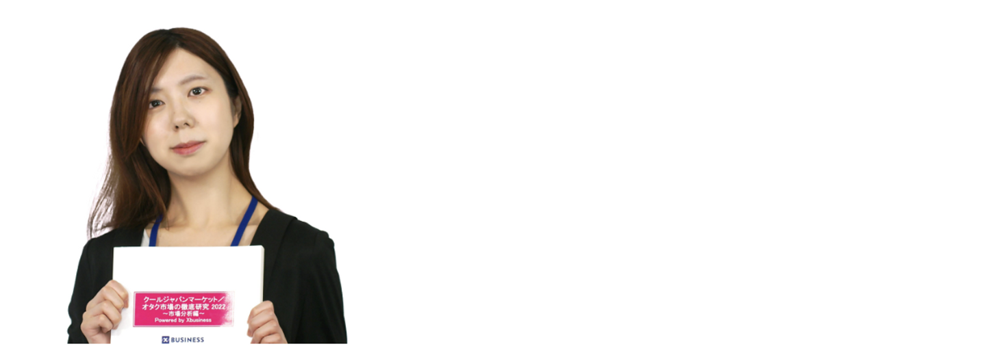 上智大学法学部卒。2020年矢野経済研究所入社。2022年よりオタク市場など産業横断的に熱量の高い分野を調査するxビジネスチームに異動。主な調査対象はVTuber・同人誌・インディーゲーム市場。発刊実績としては、『2023年 VTuber市場の徹底研究 ~消費者調査編編』、『2023年 VTuber市場の徹底研究 ~市場調査編』。その他、2022年9月発刊「2022 クールジャパンマーケット/オタク市場の徹底研究 ~市場分析編~」に寄稿。